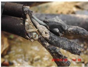 B. 芯线破皮带电导体外露