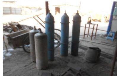 B. 氧气瓶、乙炔瓶没有安装瓶帽