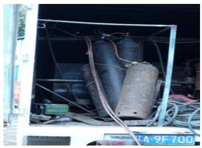 D. 氧气瓶、乙炔瓶放置在同一辆内使用